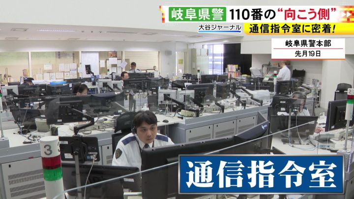 岐阜県警本部の中にある「通信指令室」では、24時間365日、岐阜県内すべての110番に対応している。 入電は1日あたり479件で、実に3分に1件のペースだ。