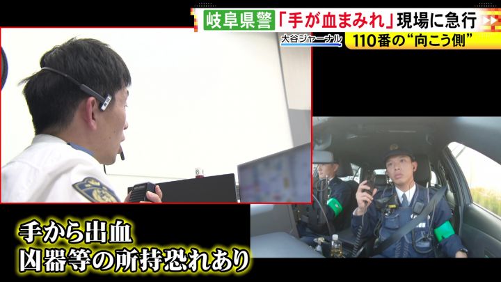 午後3時。指令室に“緊張”が走った。 通報を受ける田口誉通信指令官: 「手が血まみれ…2人組。いまどこウロウロしています? 店の中に入って、いまは駐輪場にいるってことですか?」 現場は瑞穂市内の商業施設の駐輪場で、“手が血まみれの不審な2人組がいる”という目撃情報だ。 <指令> 「『手に出血のある2人組が店の中に入ってきている』、詳細聴取中、事案番号282、どうぞ」 指令を受けたパトカーは、すぐさま出動。無線で状況を聞き取りながら 現場に急行する。