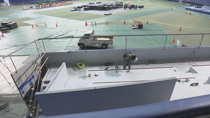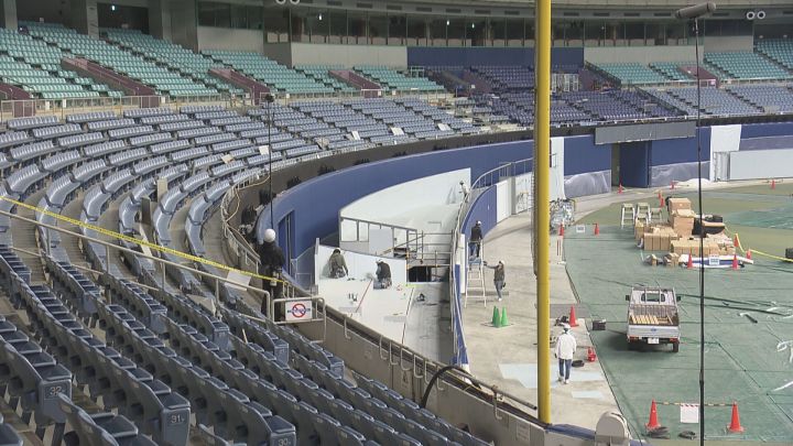 ファウルエリアに突き出すような形になる新たな座席「アリーナシート」や、ホームランウイング沿いに186メートルにわたる「LEDビジョン」の工事も進められています。