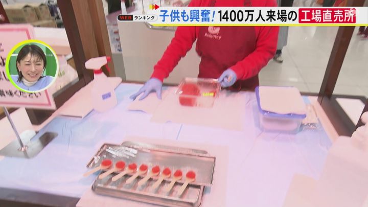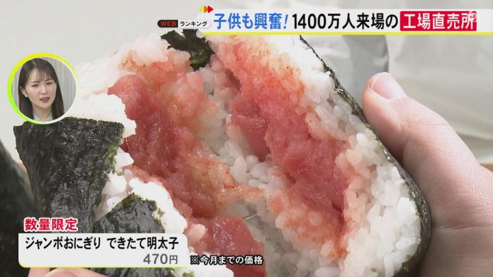 1日1トンの明太子を製造し、無料で見学ができるほか、無料で味わえる試食コーナーも用意されています。 子ども: 「少し辛いけどおいしい。イクラみたい」