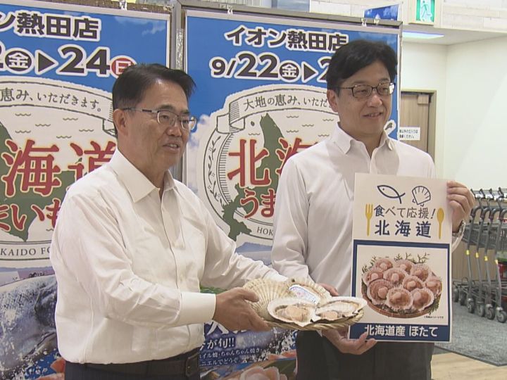 愛知県の大村知事が北海道産のホタテを食べて、おいしさをアピールしました。 大村愛知県知事: 「おいしいですね、非常においしいです。鮮度が良い、新鮮なのがよく分かります」 大村知事がほおばるのは、北海道産のホタテの刺身です。 福島第一原発の処理水の放出をめぐって、中国が日本産水産物の輸入をストップし、特に大きな打撃を受けているホタテの生産者を応援する狙いです。 東海3県のイオンの店舗では、こうした水産物を含む「北海道フェア」が22日から開かれます。
