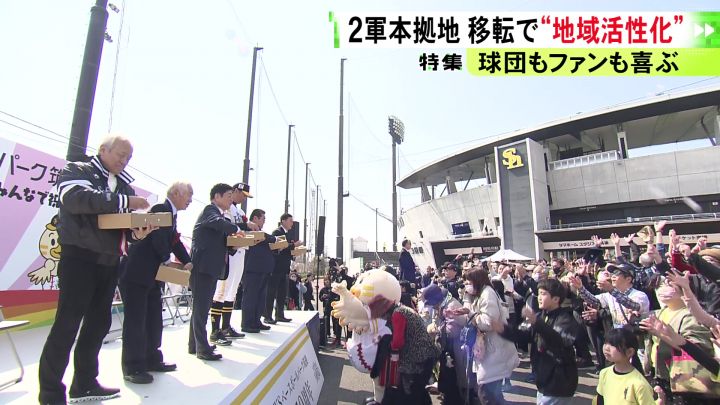 3月20日に開かれた移転10周年のイベントには、多くのファンが詰めかけた。 斉藤和巳2軍監督: 「2軍球場もすべてではないけど、数多くの球場を見てきましたけど、これだけの規模のファーム施設というのはありません」 筑後市民: 「やっぱり開けましたね、ここ筑後市が。田んぼばっかりだった」 福岡市から来たファン: 「選手も『トレーニング施設がすごい整っていて、筑後がパラダイスだ』と言っていたりとか。若手の育成で入ってきた選手がどんどん活躍してくれているのはすごいうれしい」