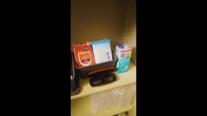 災害が起きたときのために、自宅だけではなく、会社でも備えておくことが大切です。 ロッカーには、汗拭きシートとメイク落とし、予備の眼鏡、コンタクトレンズの保存液。そして数日分の生理用品と下着、オールインワンの基礎化粧品もあると、いざという時に助かります。