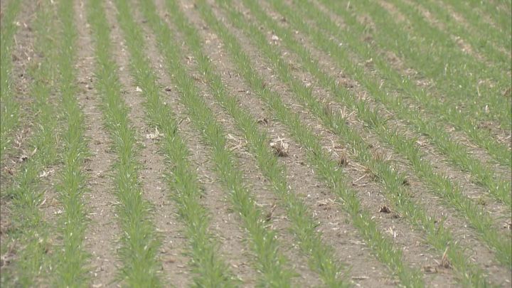 日比さん: 「『ゆめあかり』という品種の小麦です。うどんとか麺になる。水分がある方が育ちがいいような気がします。例年だともう少し大きくなっている。もう4~5センチ大きいような気がします。4月・5月の田植えの時期の水がすごく心配です」