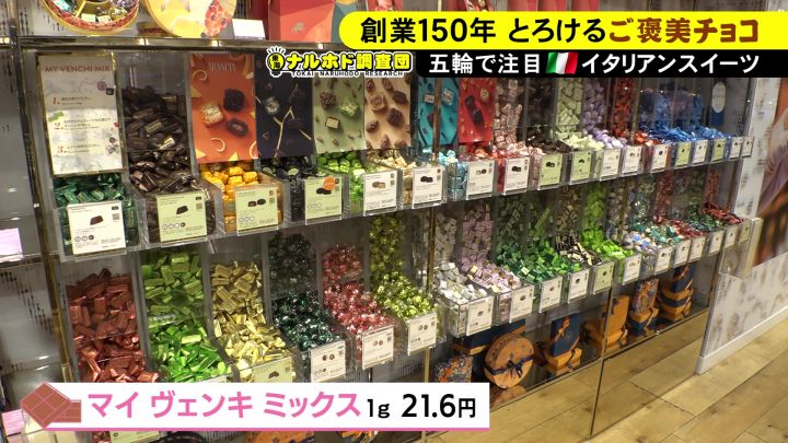 店内にはイタリアから輸入した板チョコや粒チョコなど60種類以上が並び、イートインスペースでも味わえます。 客: 「イタリアで行ったことがあって、チョコレートがおいしかったから」 別の客: 「チョコレートがすごくおいしいです」