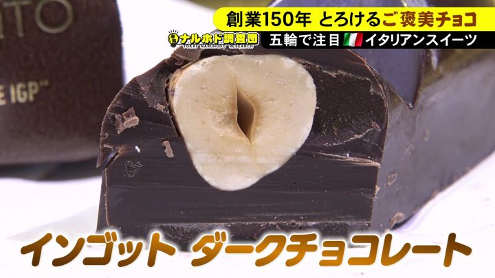 売れ筋ナンバーワンの「チョコビアピスタチオ」は、イタリア産ピスタチオをふんだんに使っています。 リポート: 「真ん中にピスタチオが入っていて、甘さよりも風味が際立ちます。贅沢な気分です」 続いて紹介するのは「インゴットダークチョコレート」。イタリア産ヘーゼルナッツが丸ごと2粒入っています。 リポート: 「ナッツに頼るのではなく、チョコレートがナッツを包み込む味わい。素材に合わせてチョコレートの配分が考えられています」