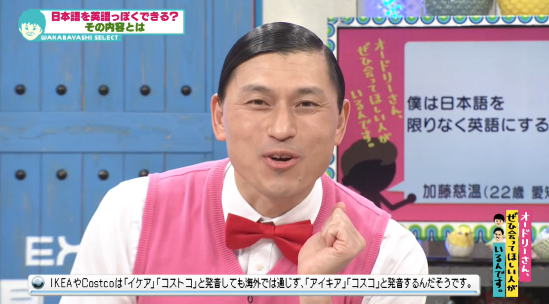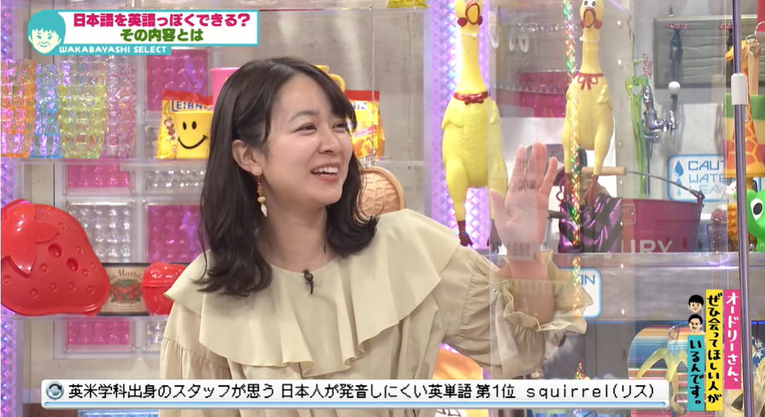 加藤さんが発音した「靴下」は日本語なのに英語のように聞こえ、ネイティブのような発音に。これにはオードリーの2人も「英語にありそう」と感心する。