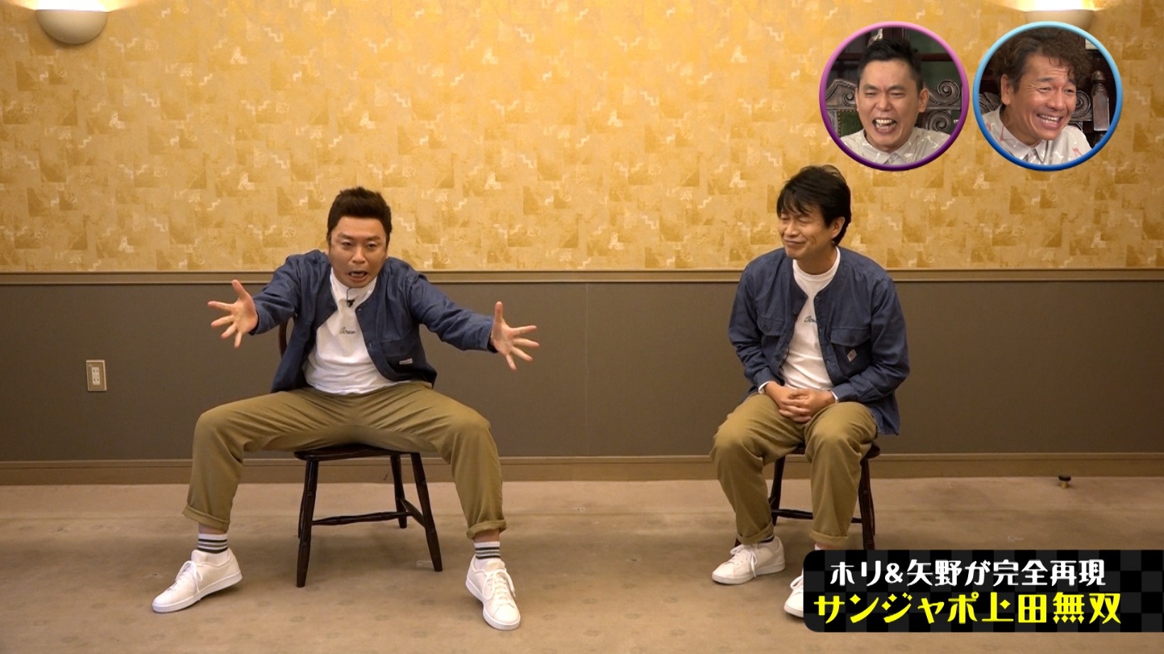 『太田上田』でのトーク回を振り返るため、お笑い芸人のホリとガリベンズ矢野がモノマネで再現する一幕も。誇張しつつも2人の特徴をしっかり捉えた再現に、太田上田も大爆笑。