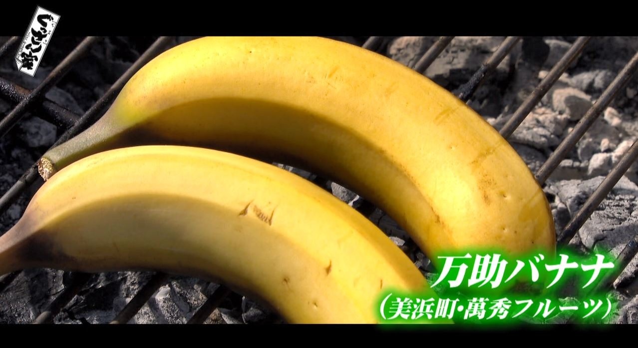 取り出したのは美浜町の『萬秀フルーツ』で栽培された『万助バナナ』。これをBBQグリルでじっくり焼きます。