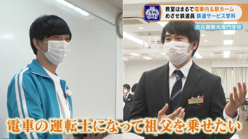 子どもの頃から憧れた仕事に向かって励む生徒や、鉄道愛にあふれる生徒達と触れ合った向井くん。「いつか皆さんが関わっている鉄道に乗って、いろんな所へ行けたら嬉しいな」と、名古屋観光専門学校・鉄道サービス学科の訪問を終えたのでした。