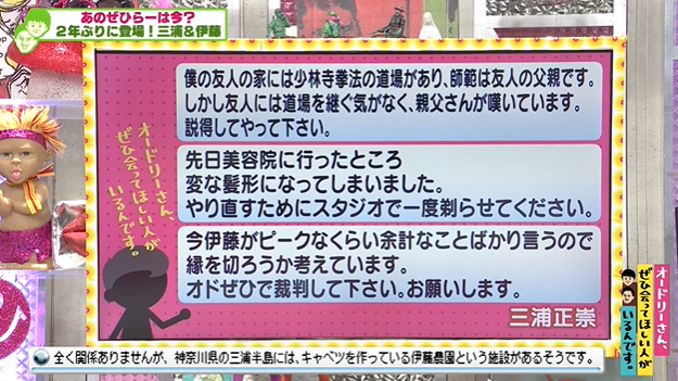 なかでも若林の目を引いたのが「今、伊藤がピークなくらい余計なことばかり言うので縁を切ろうか考えています。オドぜひで裁判して下さい」という三浦さんからの口コミ。