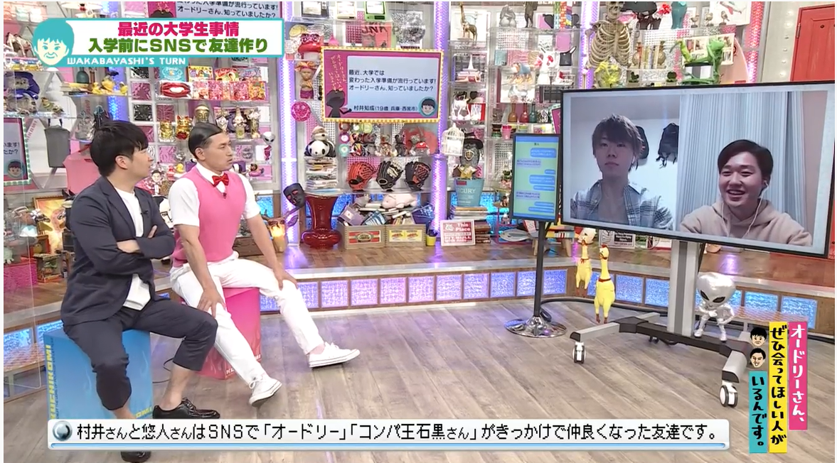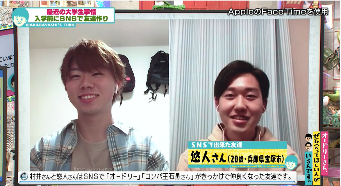 村井さんの言葉を聞いて、オードリーの2人は「よかった」と声をそろえる。入学前に知り合った悠人さんとは「オードリーが好き」という共通点から仲良くなったそうだ。