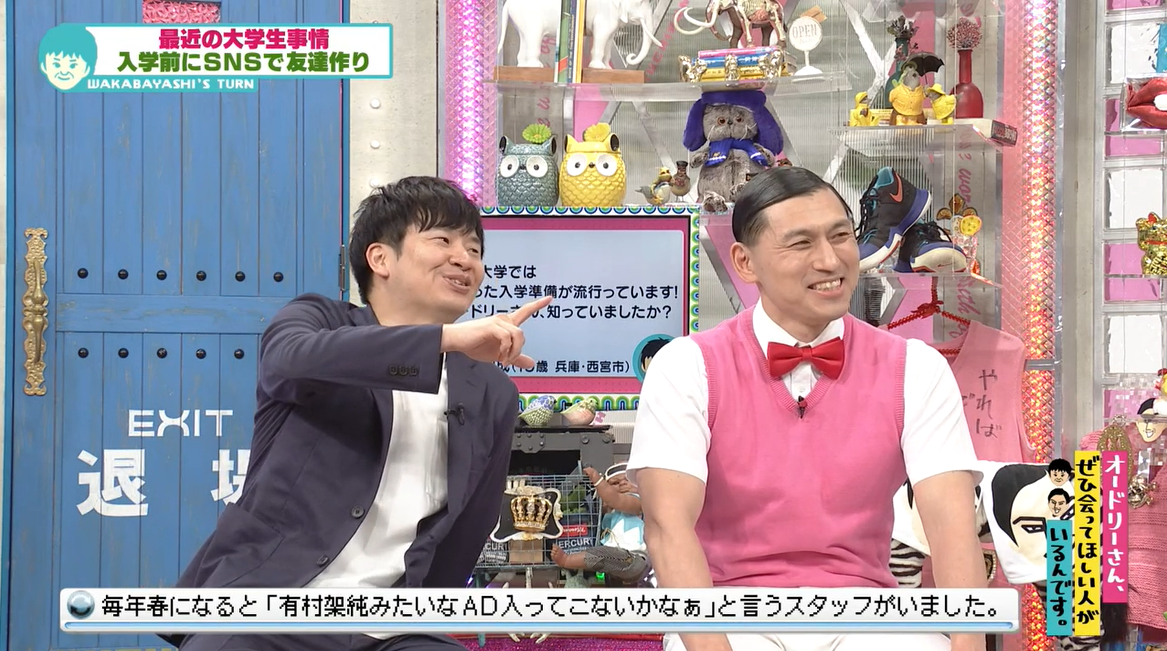 2021年8月23日の放送では、大学1年生の村井知成さんとその友人の悠人さんが登場し、最近の入学式事情について語った。入学式での悠人さんの言動にオードリーも思わずツッコミを入れる展開となった。