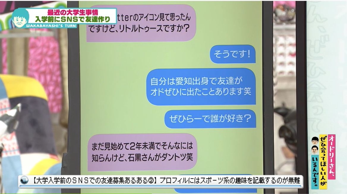 「最近の大学では変わった入学準備が流行っている」というクチコミが寄せられ、オードリーはさっそく村井さんの話を聞いてみることに。村井さんが言うには、大学に合格してから入学式へ一緒に行く人をSNSで探すのが一般的なのだとか。
