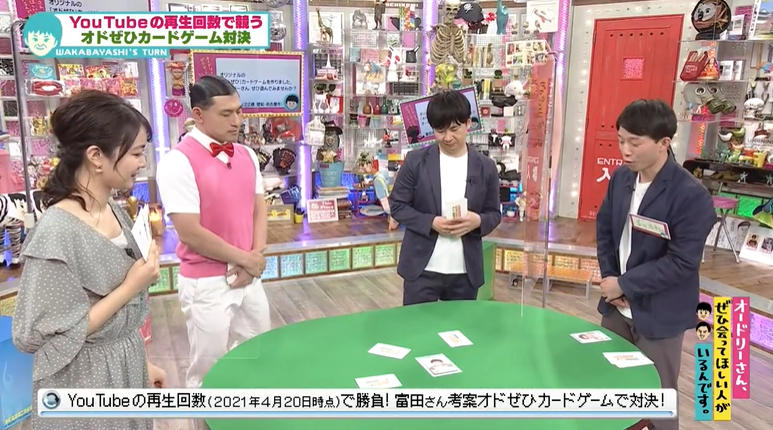 100万回再生を超える結果に、春日は「勝ったぞ!」と勝利を確信した様子。『オドぜひ』カードゲーム対決は大いに盛り上がるのだった。
