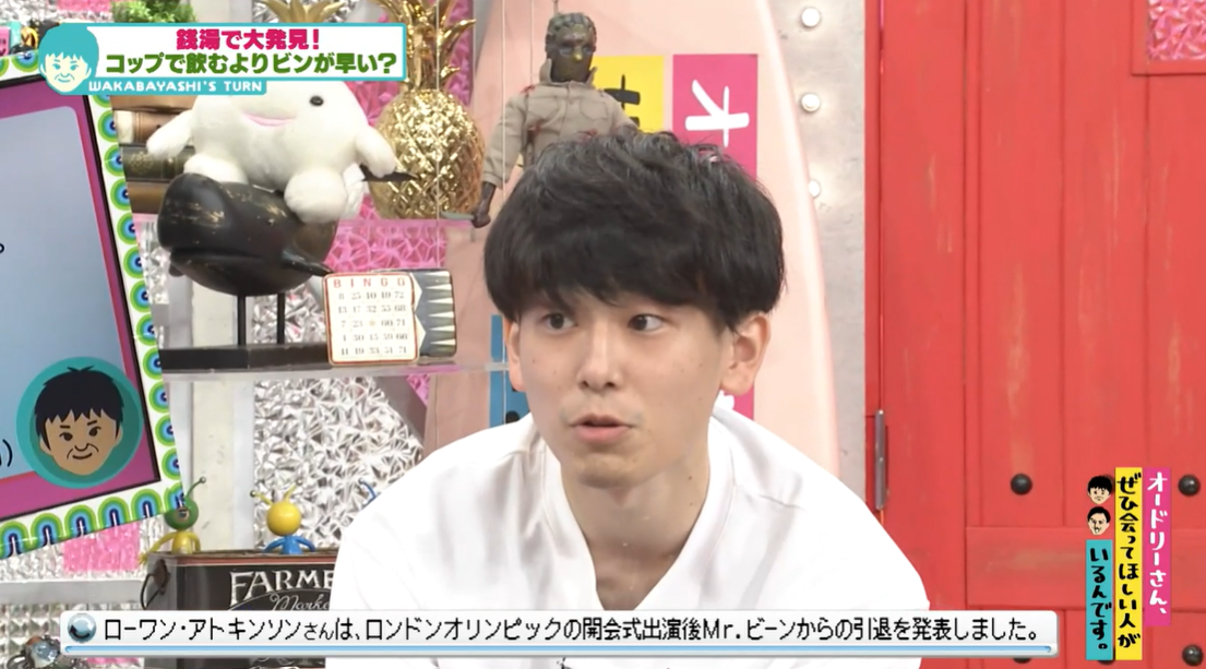 オードリーの思わぬリアクションに、「もう一回やらせてください!」と慌てる藤崎さん。慌てた拍子にビンの蓋を落としてしまい、それを見た若林も「Mr.ビーンだぞ、やり口が!」と笑いを誘った。