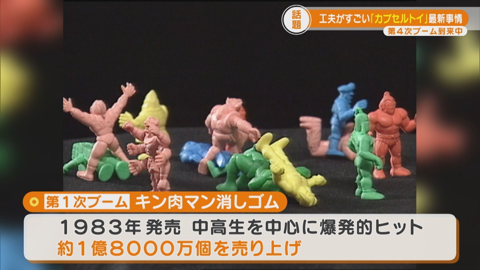 第1次ブームは、1983年発売の「キン肉マン消しゴム」。通称「キンケシ」と呼ばれ、当時の中高生を中心に爆発的にヒット。約1億8000万個を売り上げました!