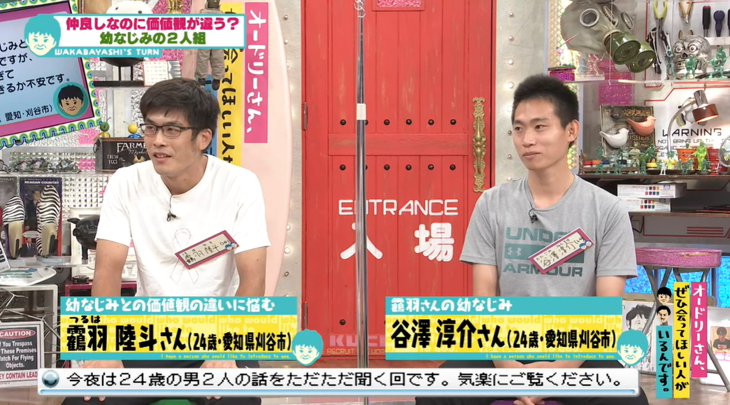 2021年11月1日の放送では、小学校からの幼なじみであり「価値観が違いすぎる」という靏羽陸斗さんと谷澤淳介さんが登場。