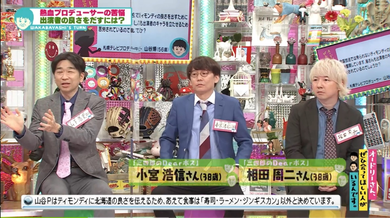 【出演者】 小宮浩信(三四郎)、 相田周二(三四郎)、 前田裕太(ティモンディ)、 高岸宏行(ティモンディ)、 山下浩史(広島放送社長・プロデューサー)、 山谷博(札幌テレビ・プロデューサー)、 馬田勉(日本海テレビ・プロデューサー)