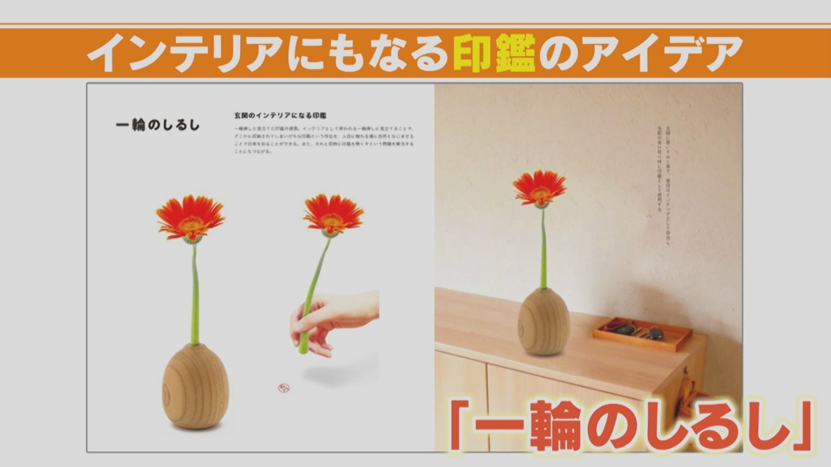 「一輪のしるし」は、インテリアに溶け込んだ便利アイテムです。花瓶に挿された一輪の造花が、判子になっています。