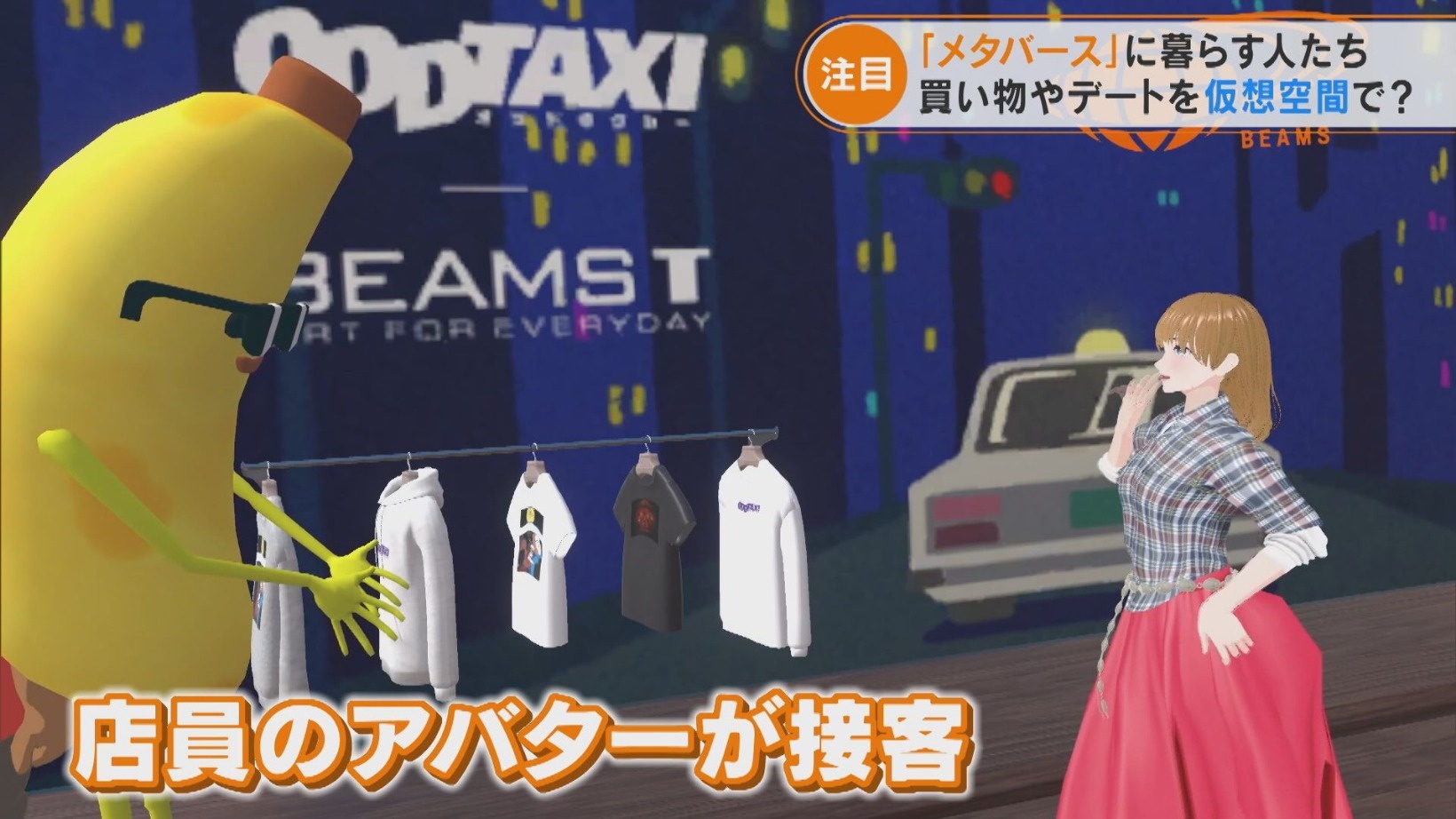 また、人気のアパレルショップBEAMSでも店員のアバターが接客をしてくれます。洋服のデザインを細かく見て頂くことができ、実際に注文したいときは「BUY」というボタンを押せば実物が家に届くシステムです。