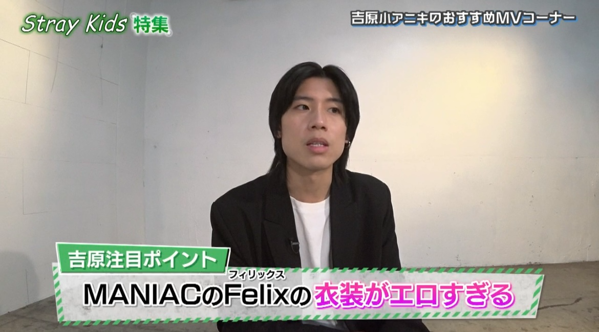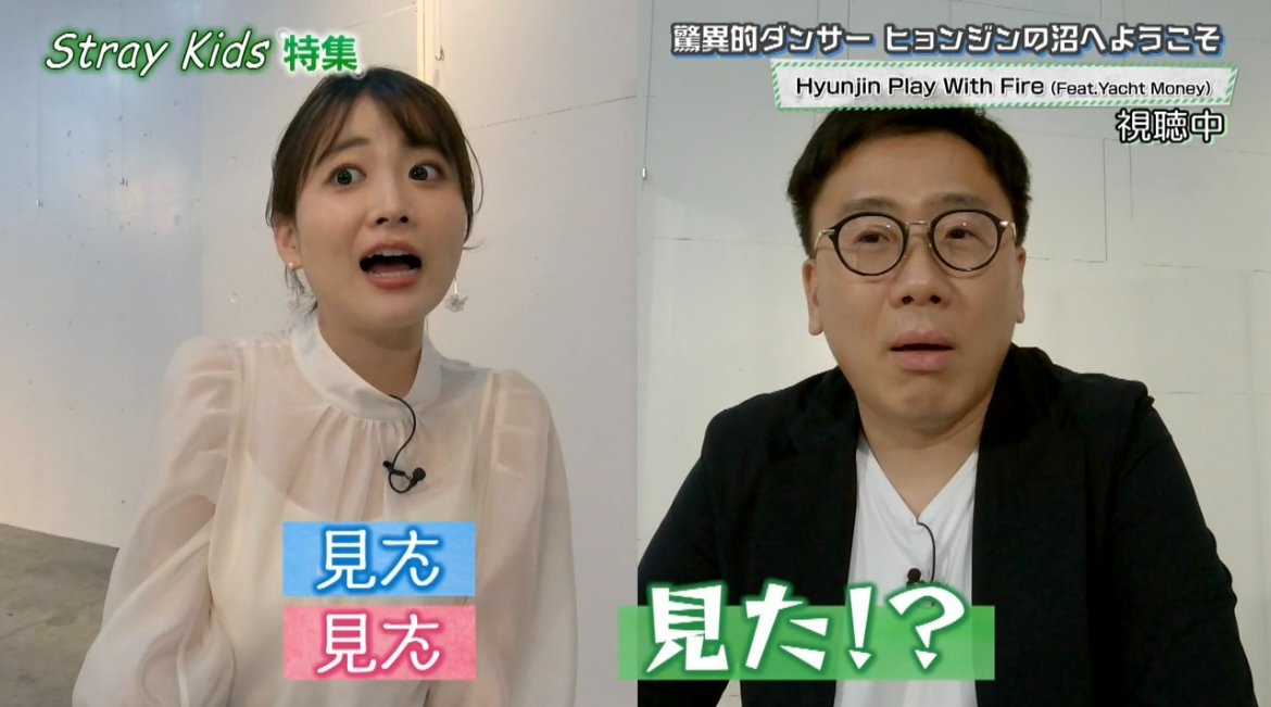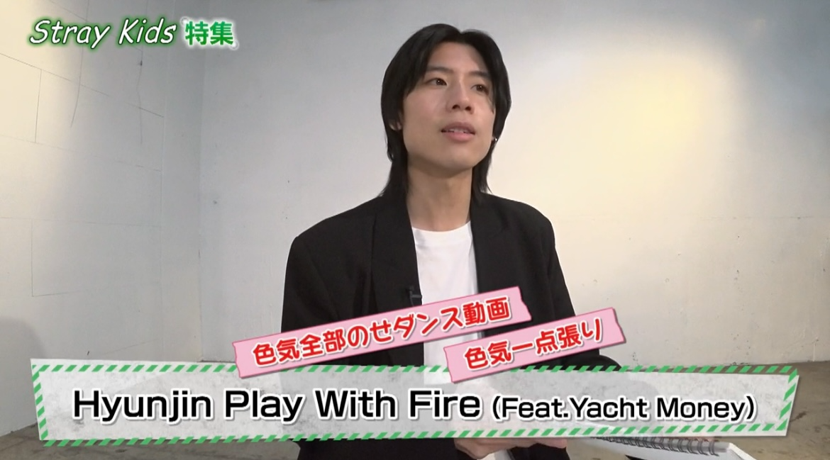 続いて吉原があげた魅力は“色気がやばい!!”。みんなセクシーさを兼ね備えているということで、吉原の推し『Hyunjin(ヒョンジン)』の色気一点張り!なダンス動画「Hyunjin Play With Fire(Fwa.Yacht Money)」を見ることに!