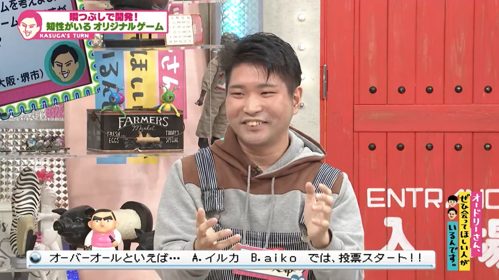 大阪からやって来た28歳の西村さん。若林が「ぱっと見、暇そうに見えない」と言うと春日は「暇だろ!忙しいやつはオーバーオール着ない」とツッコミを入れた。