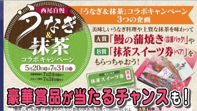 さらに番組では西尾の名産であるうなぎと抹茶のコラボキャンペーンについても紹介。知名度抜群の「三河一色産うなぎ」と「西尾の抹茶」の有名店が手を組んで、期間限定のオリジナルメニューを販売しています。