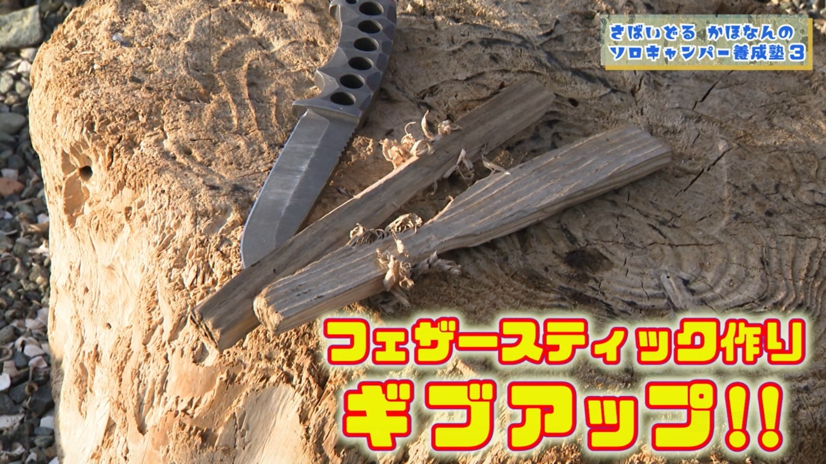 大久保さんがフェザースティック作りやメタルマッチでの火起こしにも挑戦!果たしてうまくいくのか!?