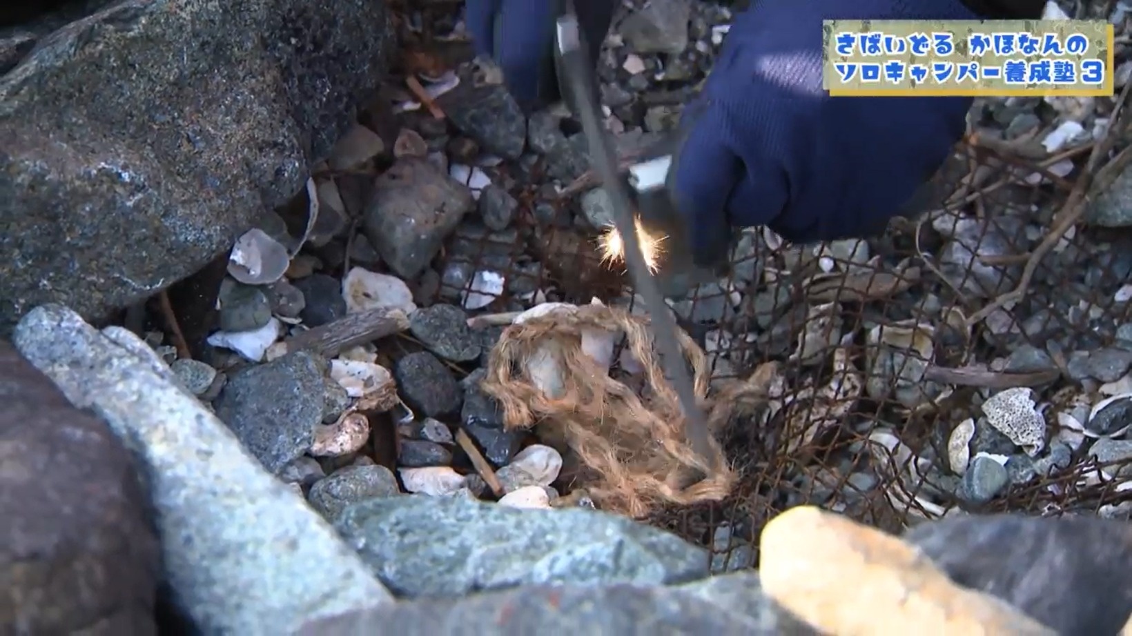 【無人島サバイバル】大久保佳代子がメタルマッチで火おこしに挑戦!『さばいどるかほなんのソロキャンパー養成塾』