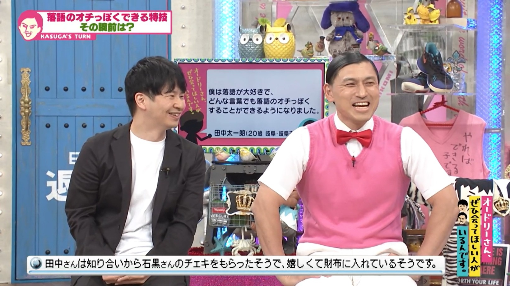想定外な短さに「オチ早っ!」と笑うオードリーの2人。オチっぽくなるだけで、内容はわからなくてもいいという田中さんに、若林は「そういうことなの?」とポカンとした。