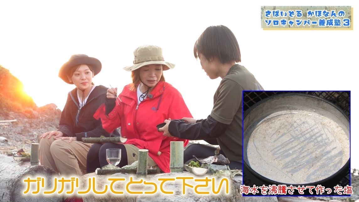 キュートな見た目とは裏腹な“ガチ”のサバイバル動画が話題の“さばいどる”かほなんと、オアシズの大久保佳代子が初共演する『かほなんのソロキャンパー養成塾 Season3』。今シリーズの舞台は愛知県・田原市、三河湾に浮かぶ無人島『姫島』。ここで前代未聞の”サバイバル女子会”を開催することに!島でとれる食材だけを使った女子会の行方は?