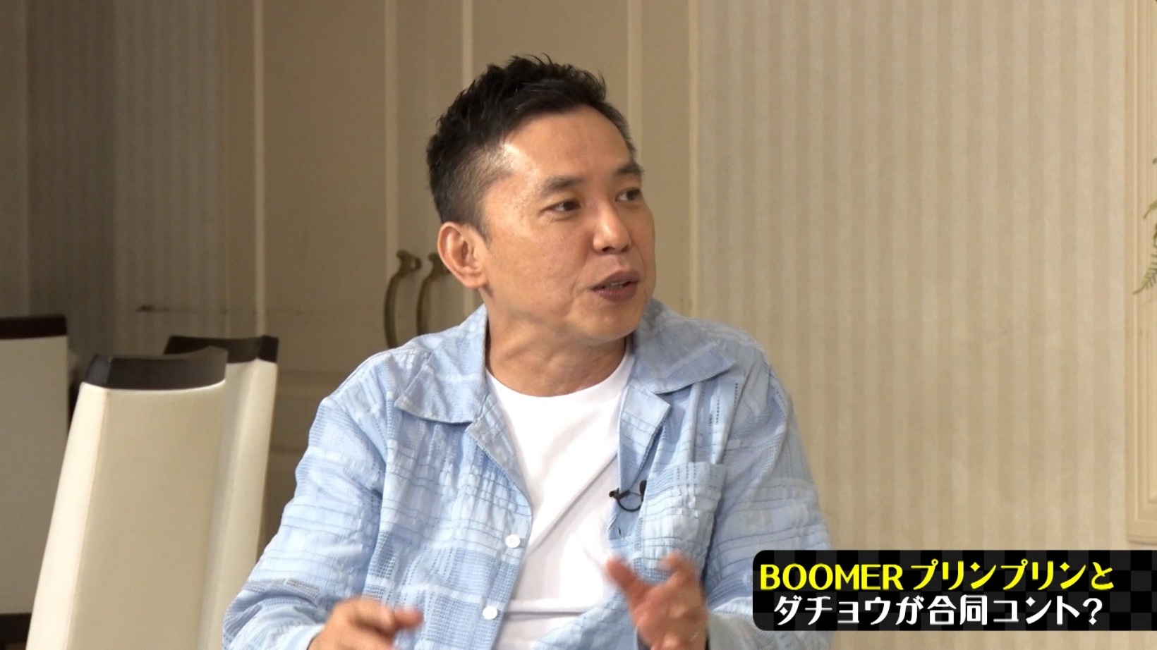 そこから「タイタンライブ」の話題に。太田はお笑いコンビ・BOOMERとプリンプリンが合同で行っているコントのなかに、ダチョウ倶楽部が入ることを提案した。