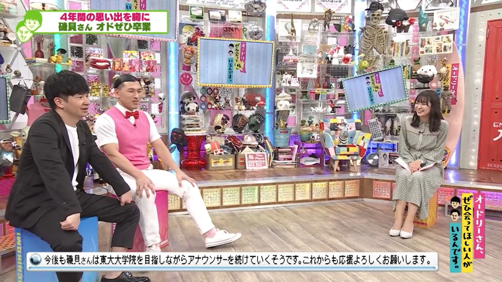 磯貝アナ「アナウンサーになってから『個性がないよね。東大生っぽい感じを出してほしいけど出ないよね』と、とにかく周りをがっかりさせてしまうことがずっと続いていました。毎日『申し訳ないな』『もう無理かな』と思っていたときに『オドぜひ』の話がありまして…」