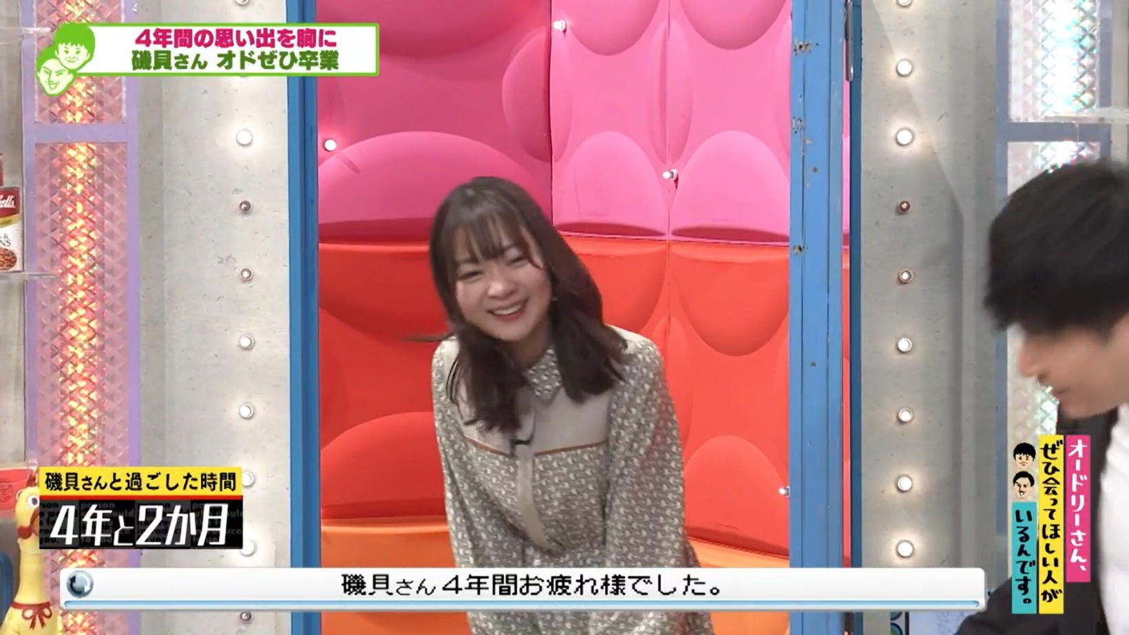 磯貝アナ、番組卒業。最後のメッセージで涙「こんなに幸せな時間があるんだ」『オドぜひ』