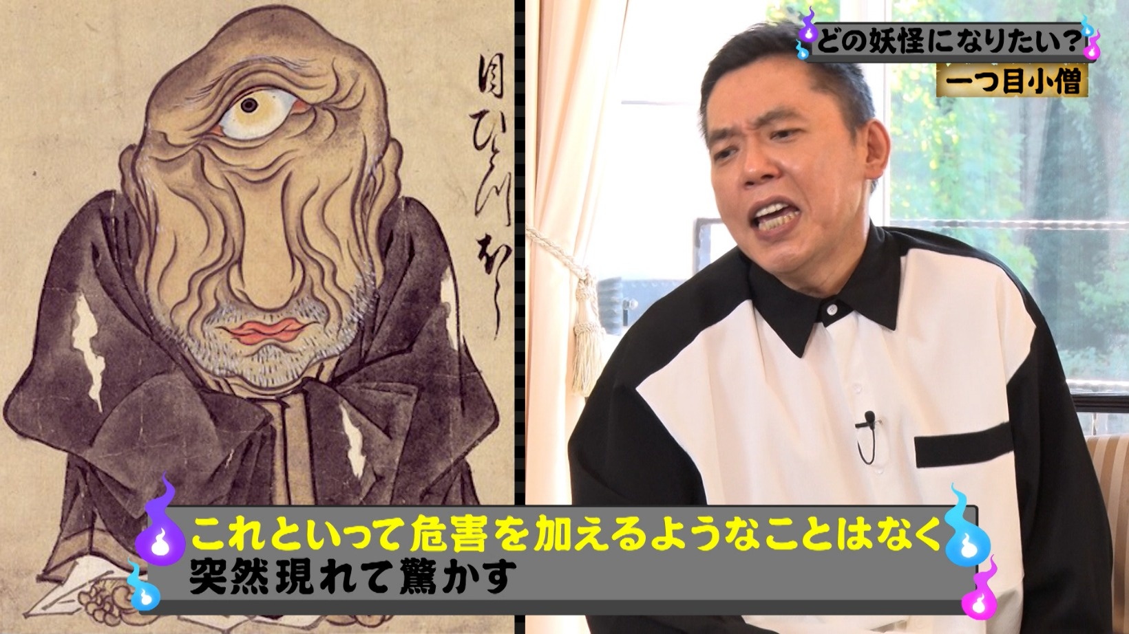 一つ目小僧への愛を語る太田。同じように目がひとつの「目玉の親父」とどちらを応援しようか悩んだこともあったのだとか。そんな太田イチオシの妖怪「一つ目小僧」を見てみると…。