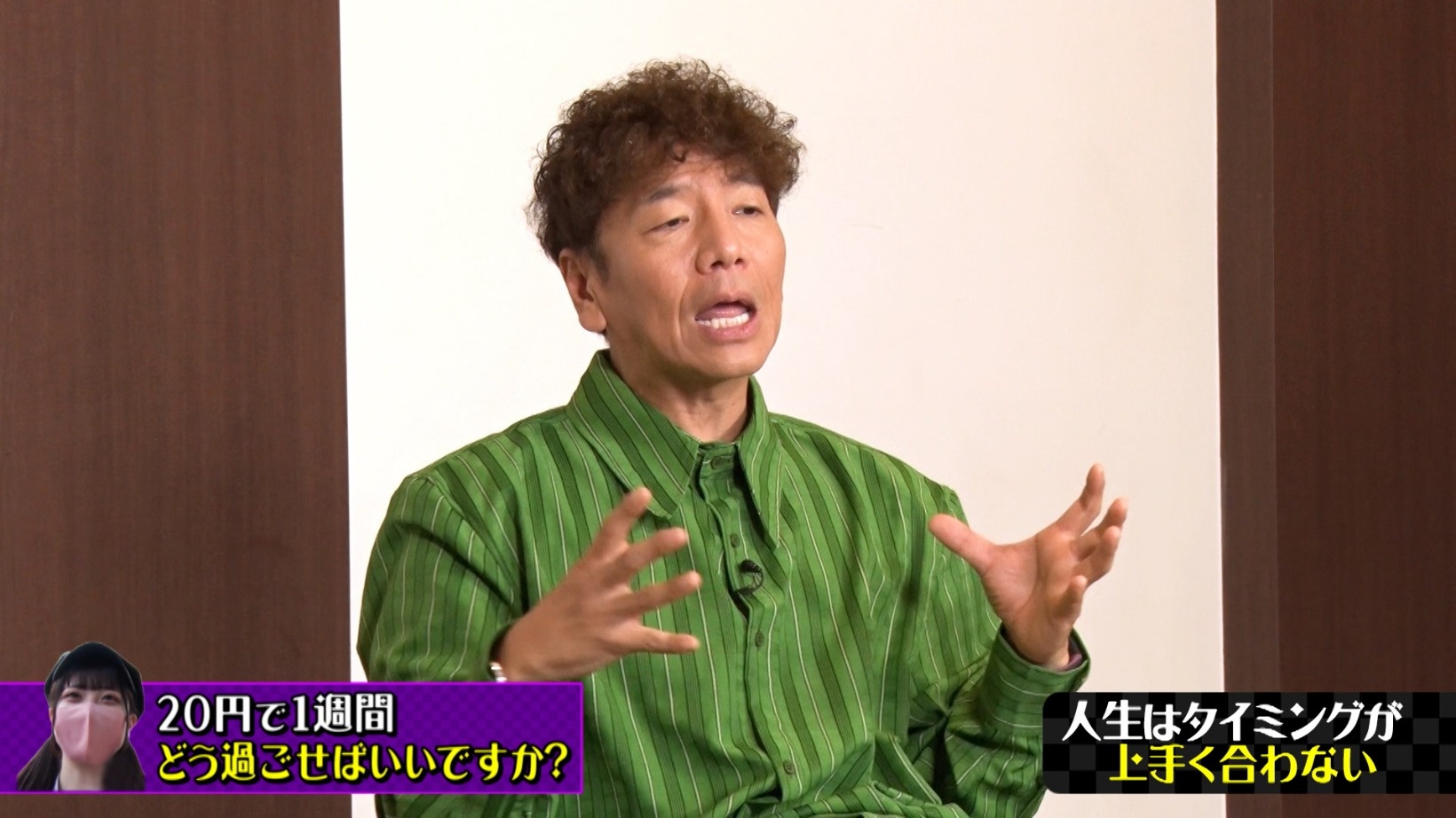 上田の持論に納得しつつも、太田は「彼女たちが聞きたいのは、『もし、所持金20円だったらどうやって一週間を生き抜くか』ってことなんですよ。あなたの哲学を聞きたいわけじゃない!」と、質問に答えない上田にツッコミを入れるのだった。