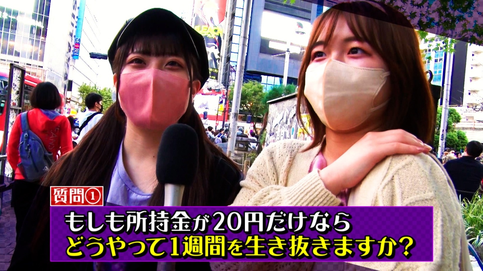 1時間半が経過したところで、ようやく女性2人から声をかけられた。しかし、彼女たちは『太田上田』のことを知らずに話しかけたそう。「男性アイドルグループにお金を全部費やしてしまう」という女性から寄せられたのは、「もしも所持金が20円だけならどうやって1週間を生き抜きますか?」という質問。