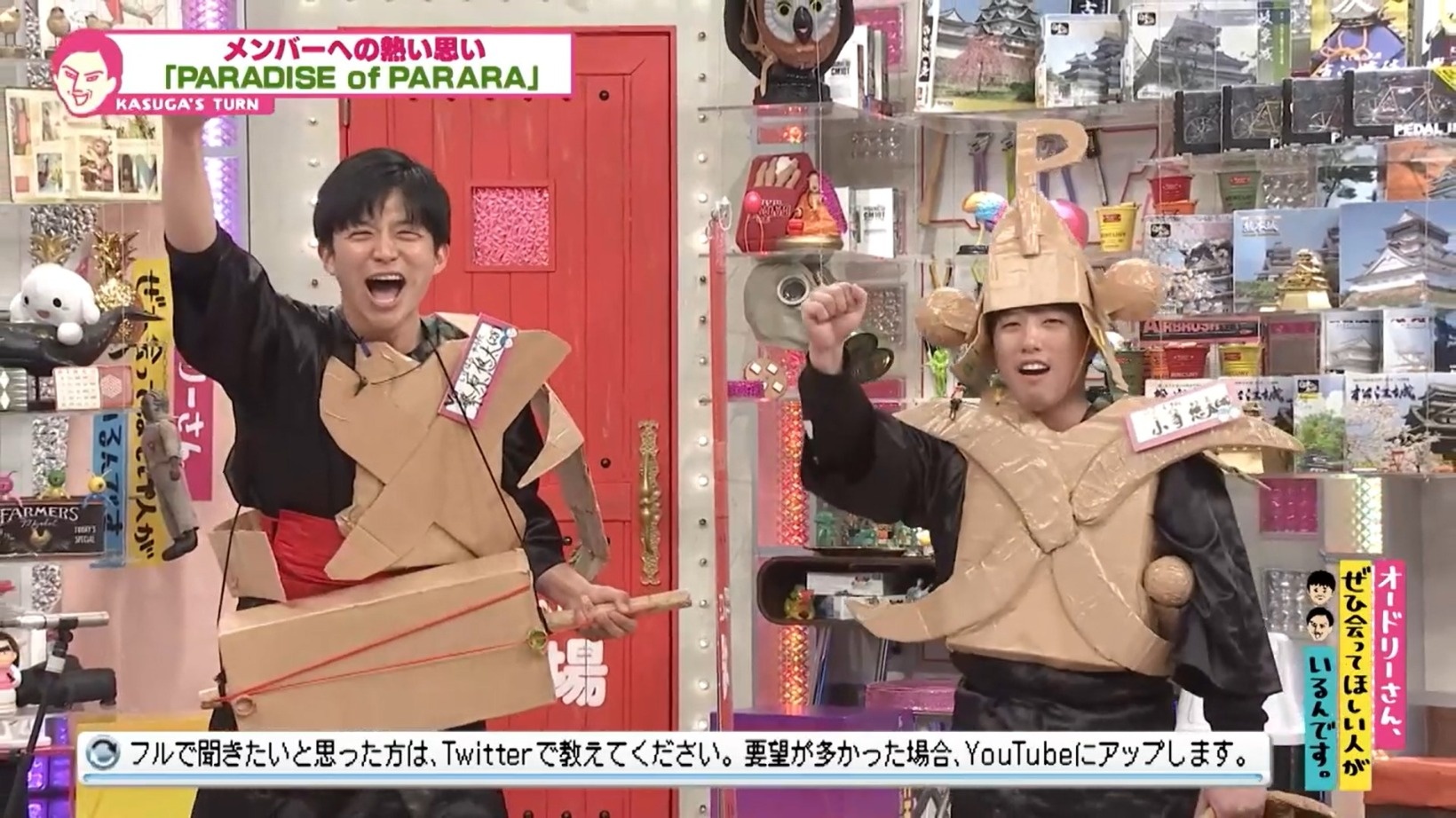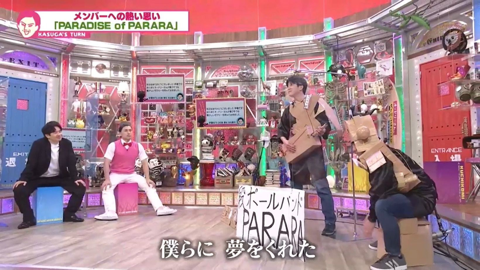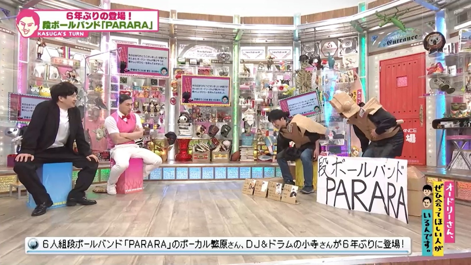 「おい!『PARARA』じゃねーか!」と声を上げる春日。6年前の出演時、繁原さんが「1年に4つ、『ビッグ4』っていうでっかい伝説を作る」と話していたことを思い出し、盛り上がるオードリーの2人。本来は6人組バンドだが、この日は2人で登場した。