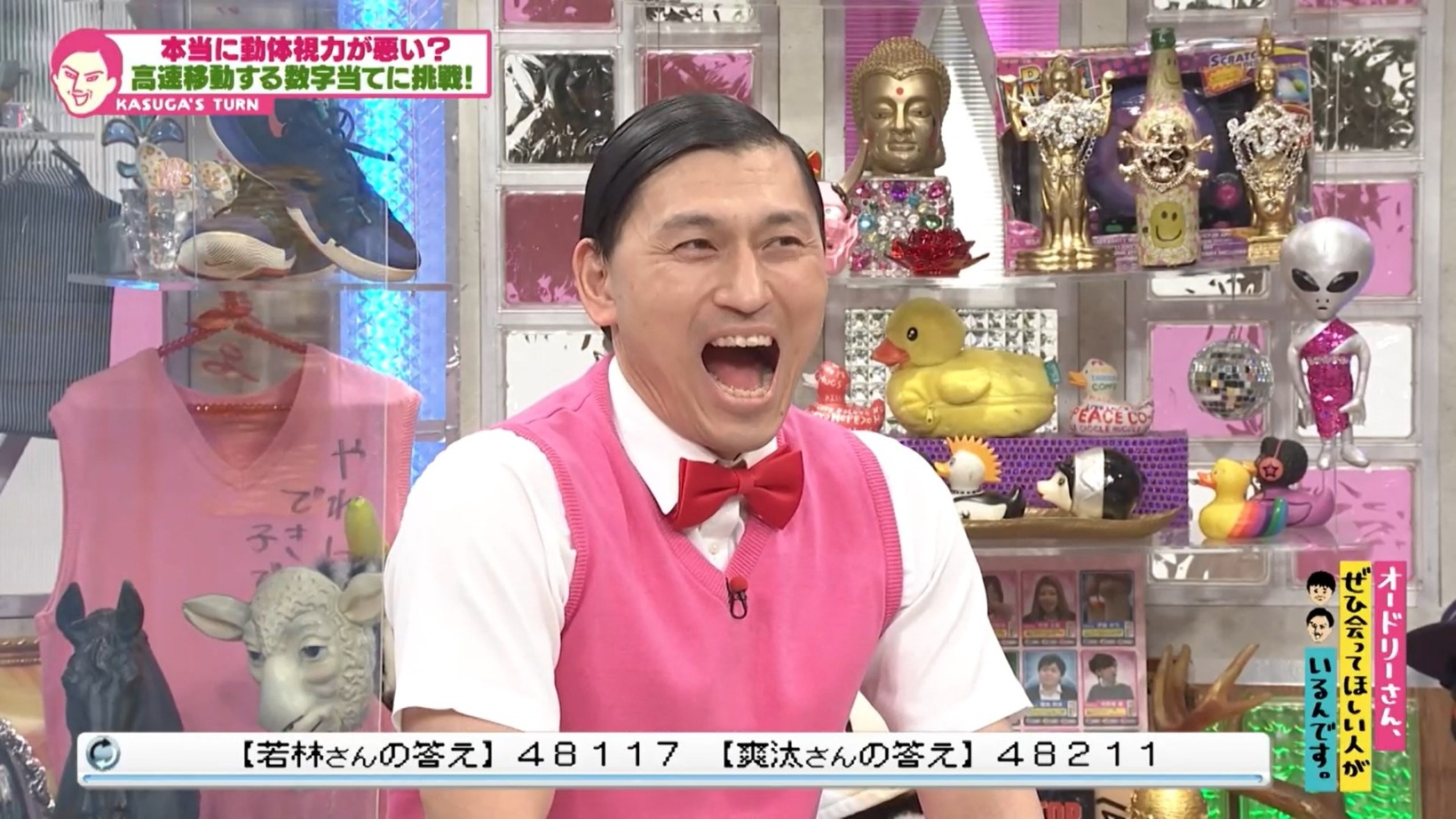 5ケタの数字になり、若林が「48117」爽汰さんが「48211」と回答。しかし、正解は「48111」で両者とも1ケタずつ間違える結果に。これにはスタジオも大盛り上がり!