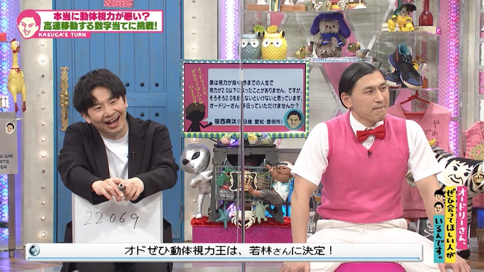 次の対戦では、若林が「22069」爽汰さんが「21673」と回答。こちらは若林が見事大正解!