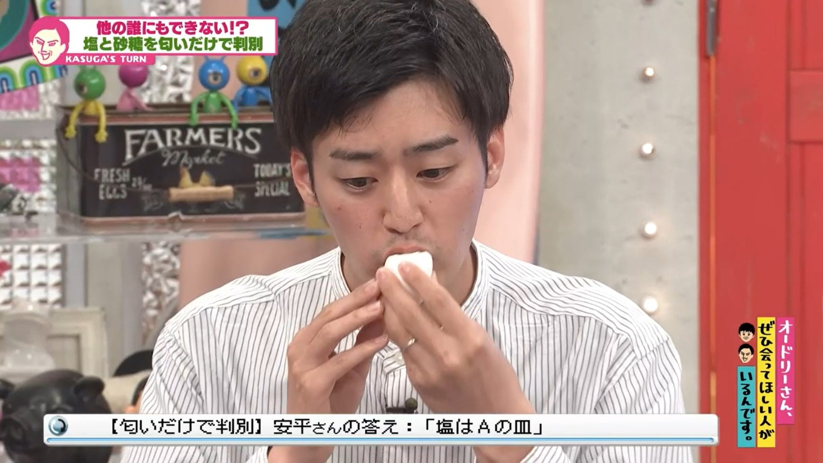 塩と砂糖を匂いで判別?前代未聞の挑戦にオードリー・若林「失敗したらすぐ帰れよ」『オドぜひ』