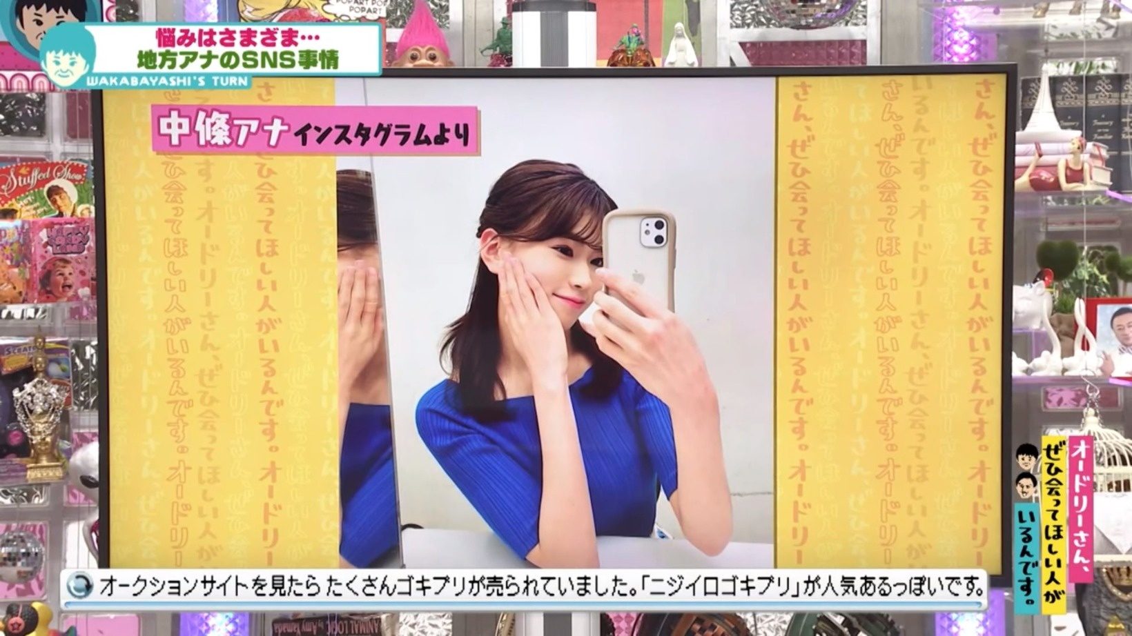2022年7月18日の放送分では、西日本放送の中條加菜アナが登場し「『キラキラアナウンサー』を演じるため、小さなウソをつきまくっています」と暴露!オードリーの2人に助けを求める中條アナに、思わぬ方向から助言が飛び出す展開となった。