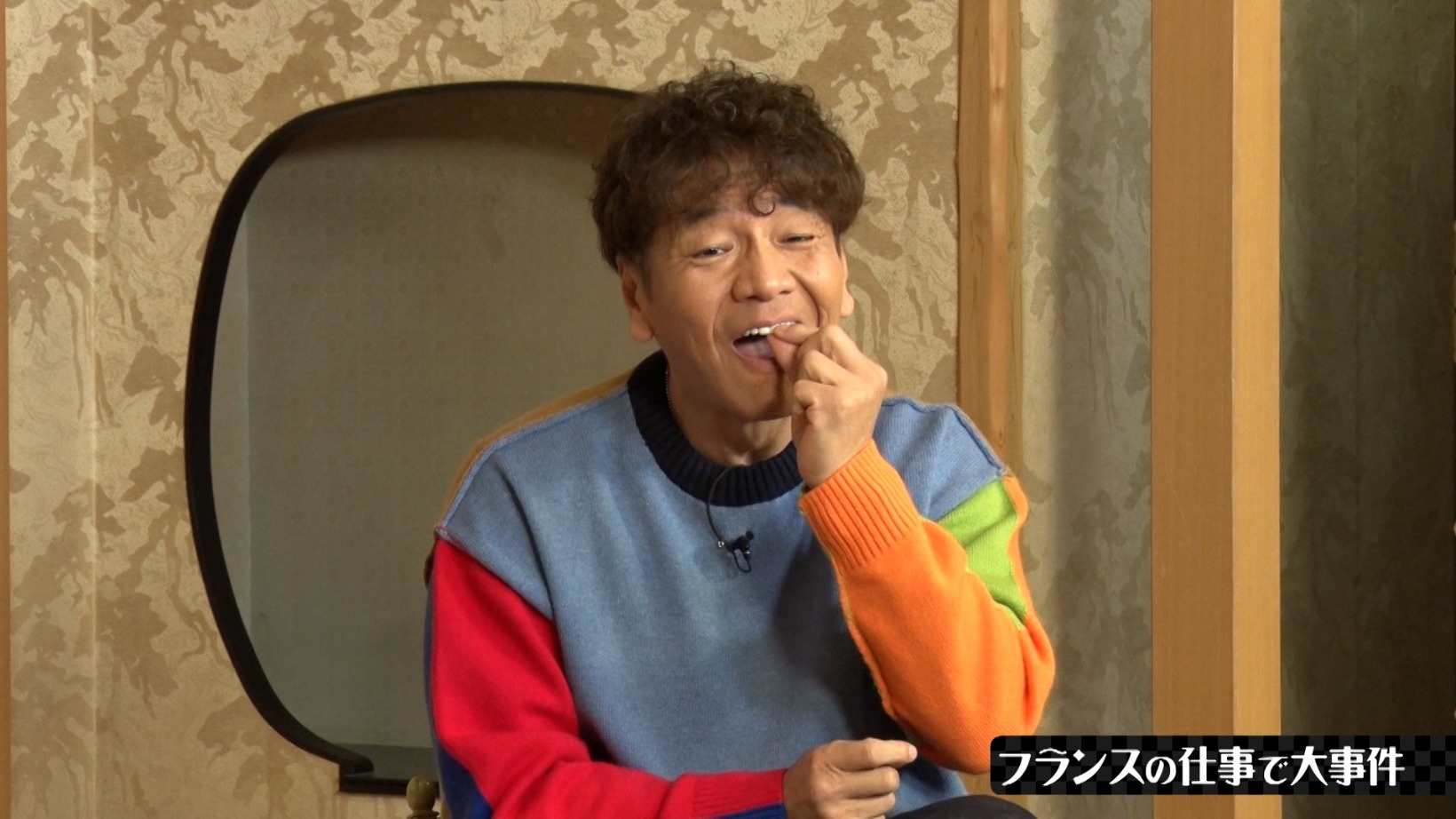 話は変わり、上田がスポーツ番組の生中継のために訪れたフランスでの話題に。昼食として出されたフランスパンのサンドイッチが硬かったため、上田の差し歯が取れてしまったという。