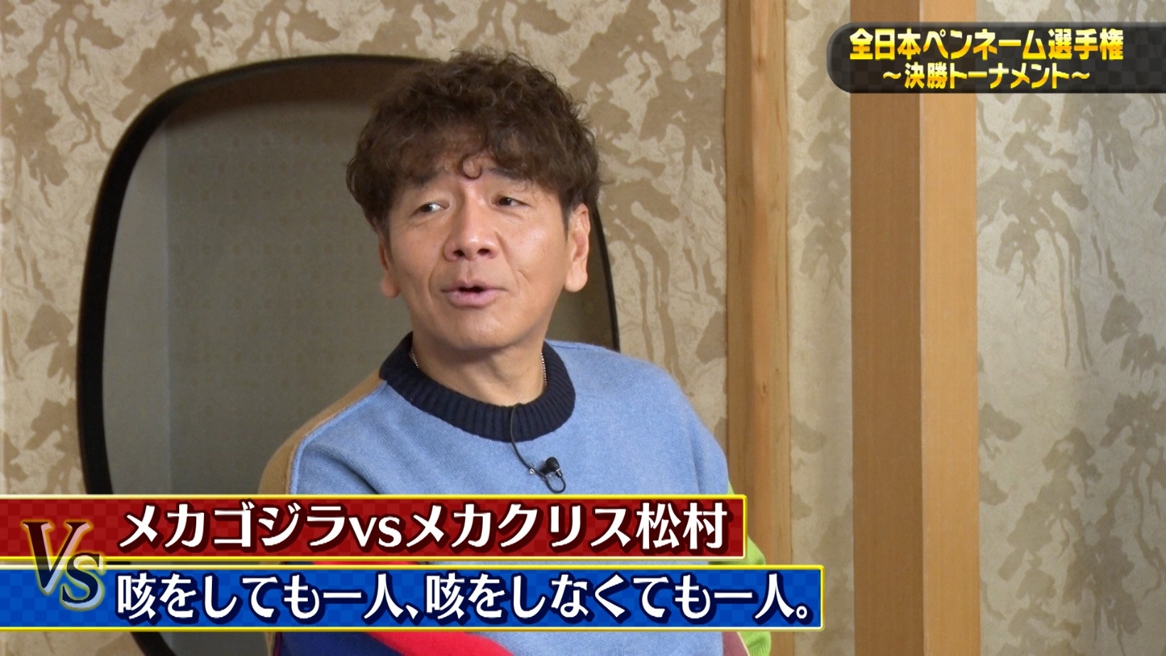 続いては、「メカゴジラvsメカクリス松村」と「咳をしても一人、咳をしなくても一人。」の対戦。