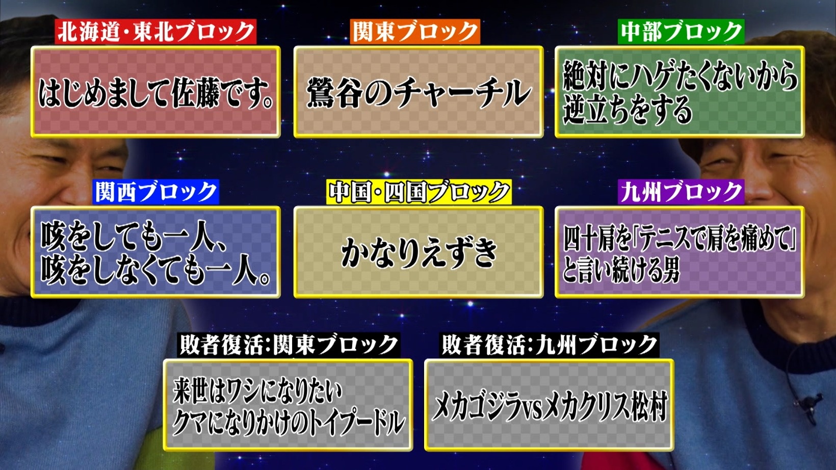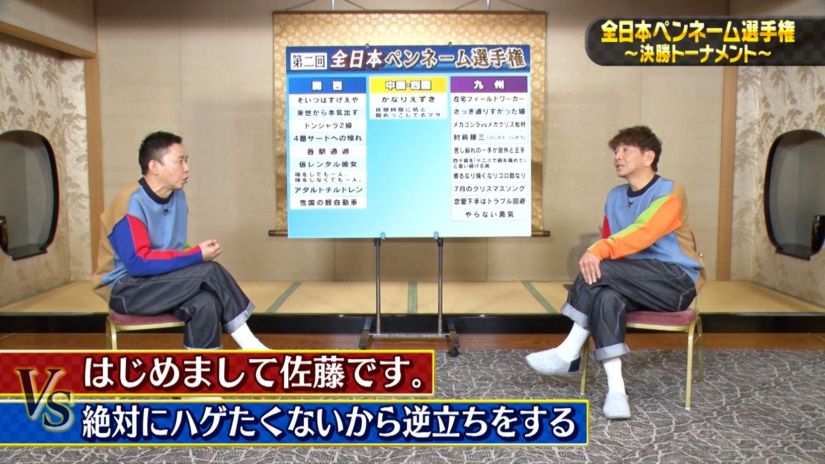 最初の対戦は「はじめまして佐藤です。」vs「絶対にハゲたくないから逆立ちをする」。
