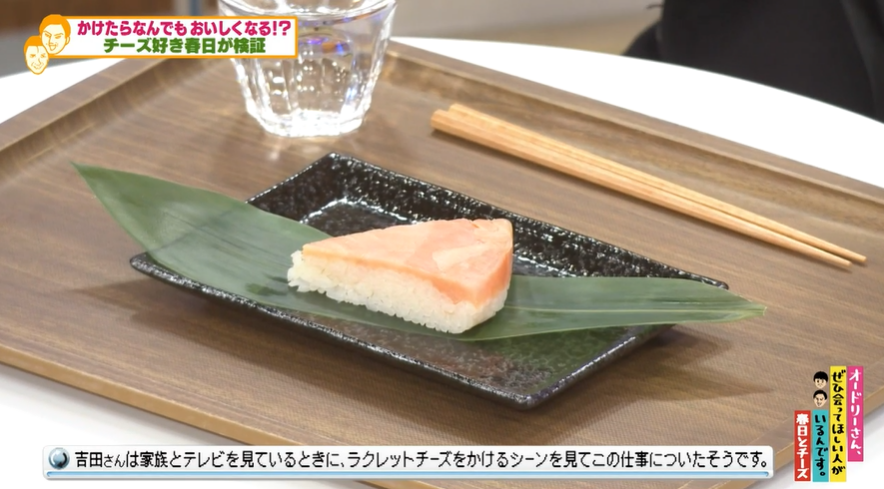 2022年10月18日の放送分では、春日が富山ロケのお土産として買ってきた鱒寿司を若林と阿部アナに食べてもらうことに。どちらか一人にはチーズをかけて食べてもらうというが…。鱒寿司×チーズの相性はいかに?!
