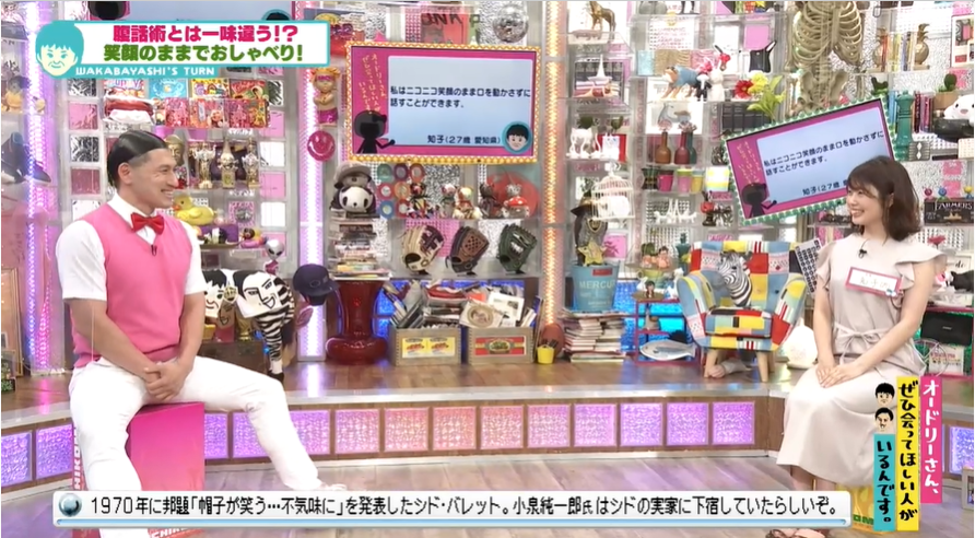 2022年11月14日の放送分では、口を動かすことなくニコニコ笑顔のまま話すことができるという知子さんが登場。オードリーの2人も知子さんの特技に挑戦するが、はたして成功できるのか!?