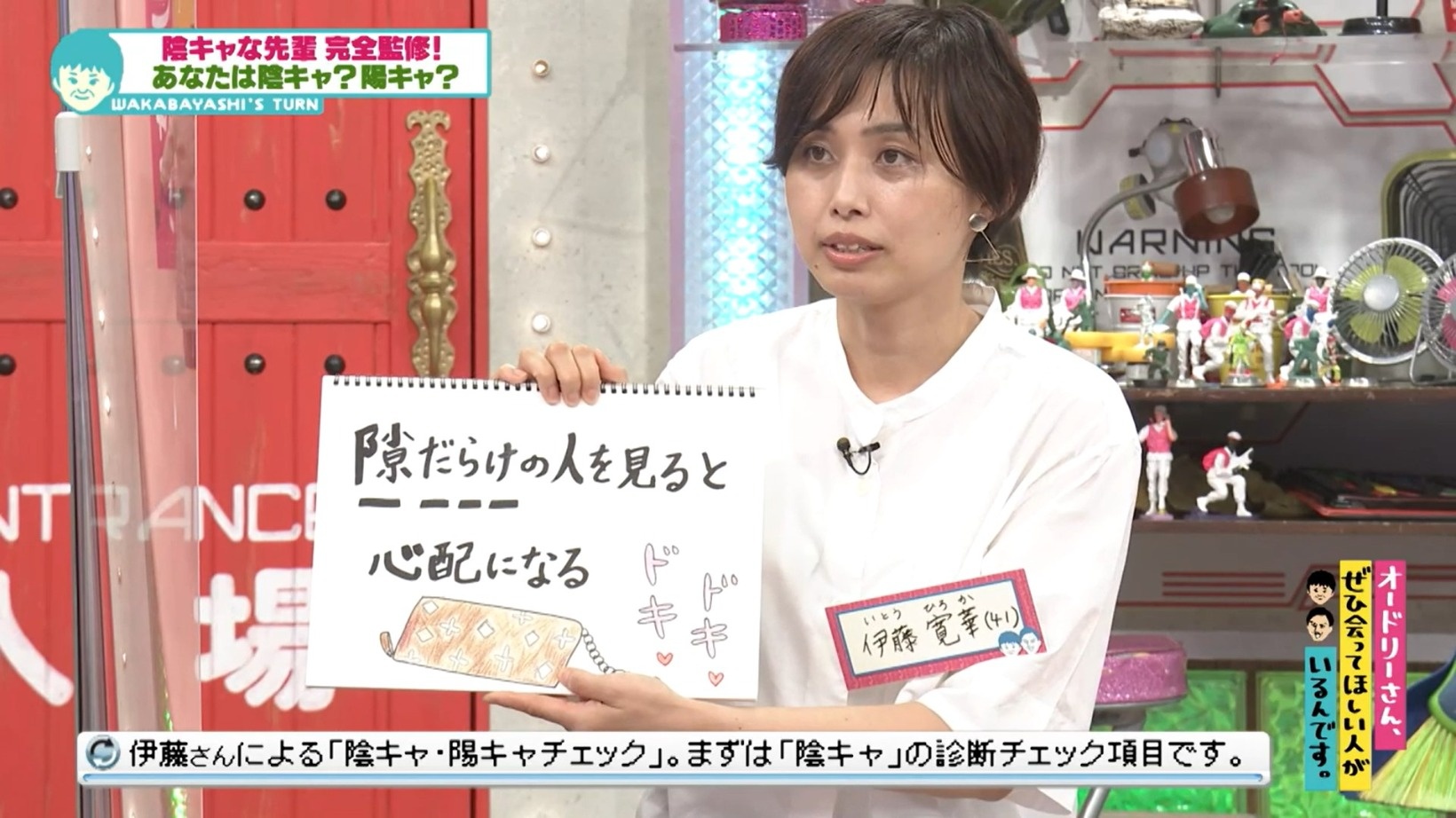 さらに伊藤さんは、「陰キャ・陽キャチェック」の項目を紹介していく。すると阿部アナは、陽キャと認定されるほど悩ましげな様子に…。その後、伊藤さん独自の理論にスタジオは再び笑いが起こり、阿部アナが悩む理由も明らかになっていくのだった。