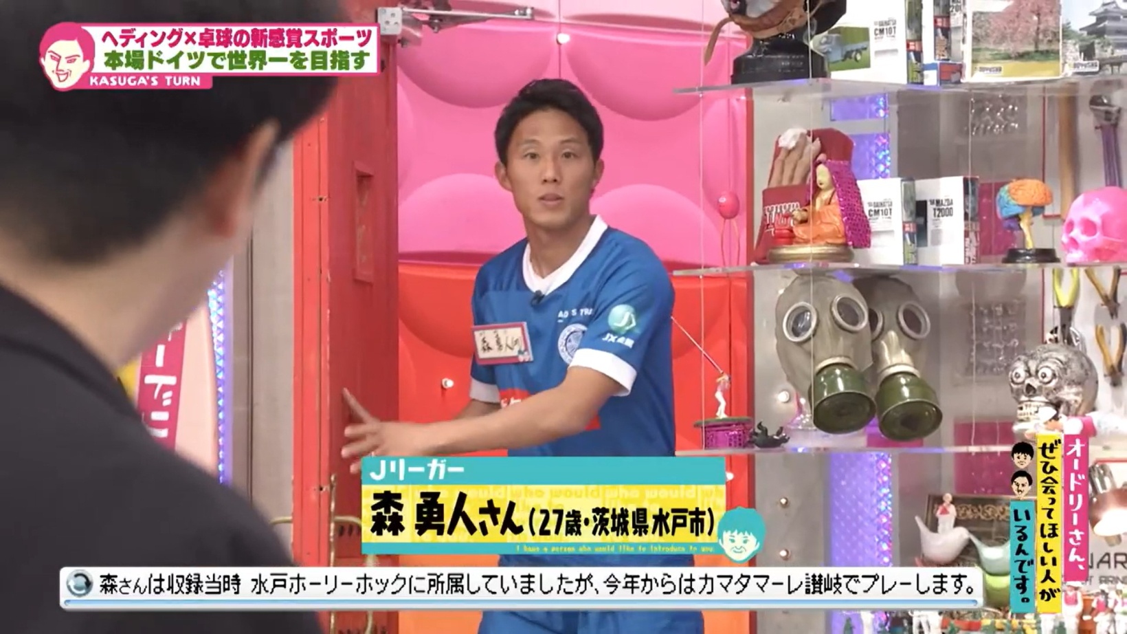 その人は、別収録で待機していたJリーガーの森勇人さん! 「森さん、へディス勝てますか?ゴン鈴木さんに」という若林の相談に、謎の自信を見せる森さん。